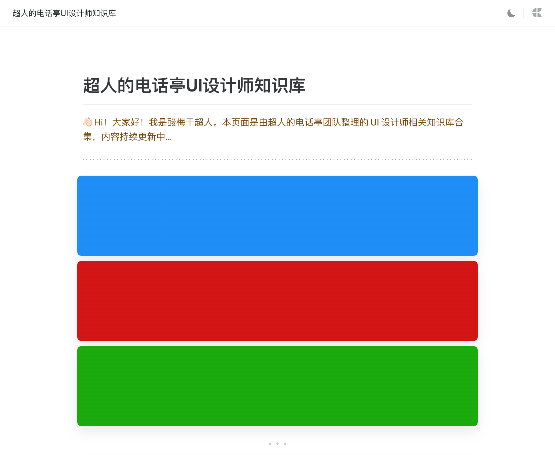- UI设计师知识库:由超人的电话亭团队整理的 UI 设计师相关知识库合集,包含用户体验,交互设计及视觉设计的相关内容。同时他们还在对今年苹果的最新版的 HIG(Human interface guidelines)进行本地化翻译,推荐想了解苹果交互指南,但又受限于英文资料的朋友阅读。