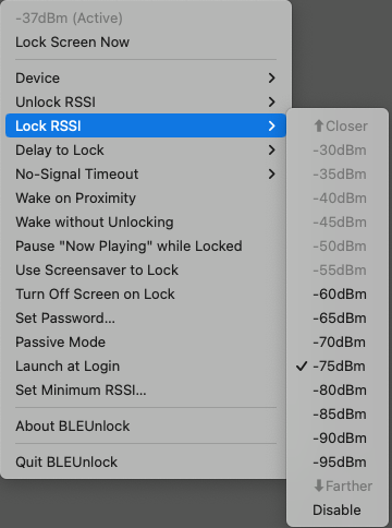 - 使用蓝牙设备解锁 Mac:这个开源软件可以通过蓝牙设备信号的强弱来锁定或者解锁 Mac,有点类似 Apple Watch 的自动开解锁功能。软件可以自定义上锁/解锁的蓝牙信号的强弱,对于我这种经常忘记锁电脑的人体验很好。但在我使用的过程中,发现 MacMini 上偶尔有蓝牙信号识别距离不准,然后自动触发锁定屏幕的问题,但是另一台 MacBook Air 上就没有出现过,原因暂时未知。