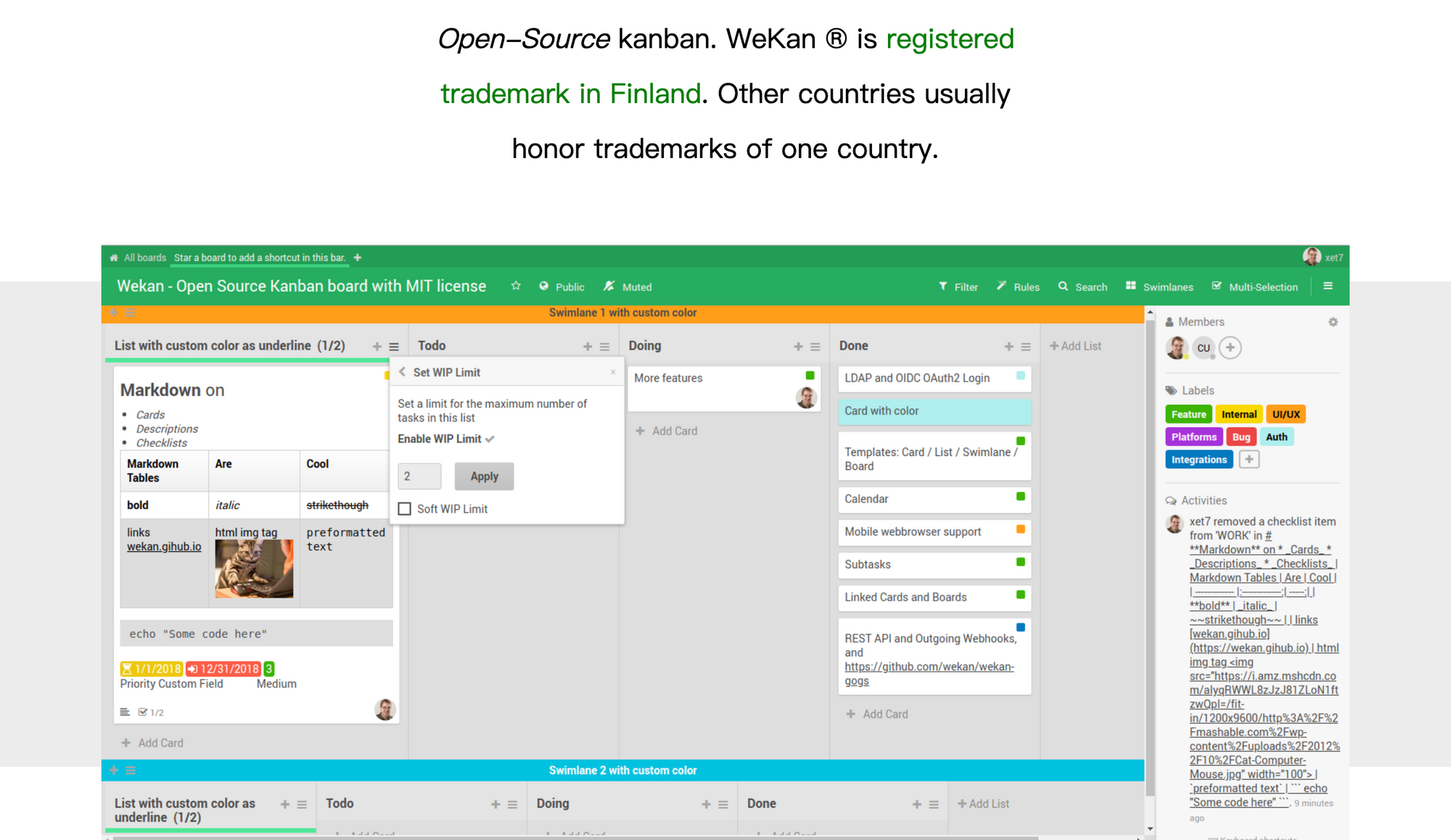 - 一款开源类 Trello 看板应用:开源的看板应用,支持跨平台,NAS 以及 Docker 部署。界面同 Trello 比还是稍微有些差距,功能上却对于 Trello 做了一定的补充。相对于 Trello 现在的定价来说,用很小的成本就能搭建出来一套带有权限控制的私有看板应用,还是很值的。